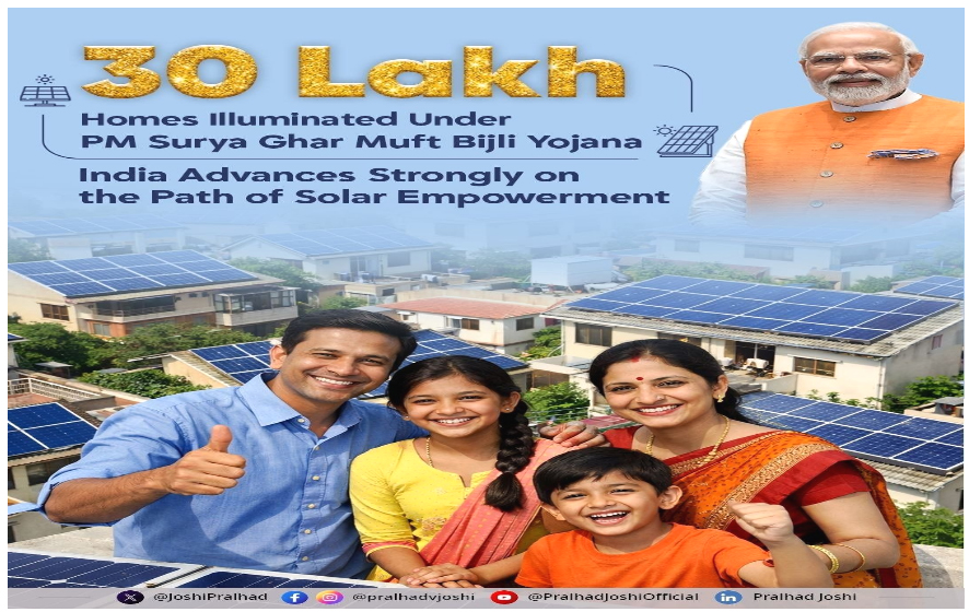 Print 🖨 PDF 📄 eBook 📱PM सूर्य घर योजना: 30 लाख घरों ने अपनाया रूफटॉप सोलर, PM मोदी ने दी बधाई UNN: देश में स्वच्छ ऊर्जा को बढ़ावा देने की दिशा में एक महत्वपूर्ण उपलब्धि हासिल हुई है। PM नरेंद्र मोदी ने प्रधानमंत्री सूर्य घर योजना के तहत 30 लाख घरों द्वारा रूफटॉप सोलर अपनाने […]