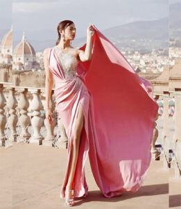 टस्कनी की धूप में उनका रोज़-पिंक सैटिन लुक उनके कोमल और रोमांटिक रूप को दर्शाता है। एक कंधे पर गिरता ड्रेप और सिल्वर एम्ब्रॉयडरी का झिलमिलाता संयोजन उनके सहज सौंदर्य को और भी निखार देता है — मानो पुराने ज़माने की नज़ाकत आधुनिक आत्मविश्वास में लिपटी हो। शैम्पेन क्रिस्टल गाउन में काशिका एक पुनर्जन्मी तारे की तरह दमकती हैं। नाज़ुक बीडवर्क और पंखों जैसी डिटेलिंग रोशनी और लक्ज़री का ऐसा मेल रचती है, जिसे वो सहजता के साथ धारण करती हैं। यही संतुलन — चमक और सादगी के बीच — उनकी असली स्टाइल भाषा को परिभाषित करता है। फिर आती है उनकी एमरल्ड-ग्रीन स्कल्प्टेड ड्रेस, जो संरचना और तरलता का साहसी संगम है। इसके आधुनिक डिजाइन, घुमावदार पैटर्न और क्रिस्टल एम्बेलिशमेंट्स उनके निडर फैशन एप्रोच को दर्शाते हैं। वह सिर्फ कपड़े नहीं पहनतीं — उन्हें जीवन देती हैं। काशिका मुस्कुराकर कहती हैं, “मैं मानती हूँ कि फैशन आपकी शख्सियत को व्यक्त करना चाहिए — आपका सुकून, आपका साहस, आपका आत्मविश्वास। मैंने हमेशा विनम्र रहना, ज़रूरत पड़ने पर साहसी होना, और अपनी आत्मा को क्लासिक बनाए रखना पसंद किया है।” तेज़ लाल रंगों से लेकर गहरे समुद्री हरे रंगों तक, काशिका कपूर सिर्फ रंग नहीं पहनतीं — वह उन्हें भावनाओं में बदल देती हैं। हर गाउन, हर पोज़, हर लुक एक ऐसी स्त्री की कहानी कहता है जो अपनी कीमत जानती है — और उसे गरिमा के साथ जीती है।