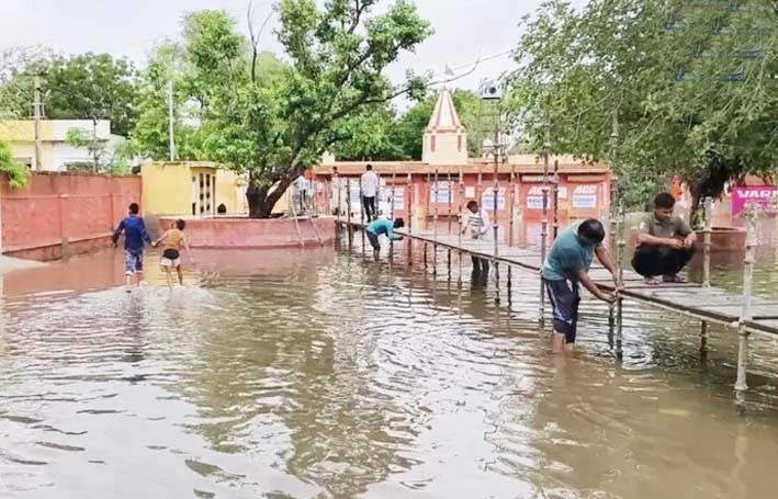 नई दिल्ली । लगातार दो दिन से जारी मूसलाधार बारिश के कारण राजस्थान में 18 लोगों की जानें चली गईं हैं। जयपुर, चूरू, बीकानेर, श्रीगंगानगर और हनुमानगढ़ के निचले इलाकों में 4 से 5 फीट तक जलभराव रहा, जबकि बूंदी में मेज नदी का जलस्तर खतरे के निशान से ऊपर पहुंचते ही कई गांव मुख्यालय से कट गए। प्रदेश के आठ ज़िलों में रेड अलर्ट जारी किया गया है और प्रशासन ने लोगों से अनावश्यक आवागमन न करने की अपील की है।