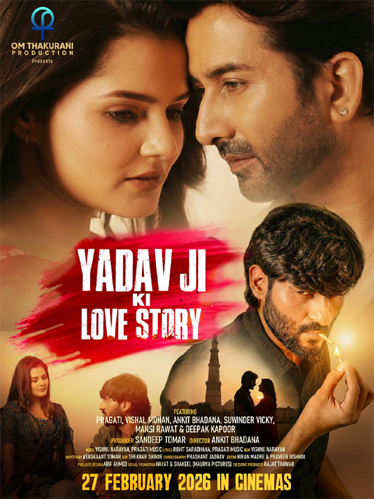 The film features a stellar cast that includes Pragati, Vishal Mohan, Ankit Bhadana, Suwinder Vicky, Mansi Rawat and Deepak Kapoor. The poster instantly draws the attention with its theme and showcases the world filled with love, intensity and emotions.Directed by Ankit Bhadana and written by Ayaskaant Tomar, ‘Yadav Ji Ki Love Story’ stands out for its willingness to engage with a socially sensitive and debated subject through a narrative lens. The first look poster suggests that the film does not merely rely on romance but positions love within a larger socio-political and cultural context. With an ensemble cast at its core, the film promises strong performances rooted in realism. At a time when Indian cinema is increasingly relying on action and a gangster cinema, Yadav Ji Ki Love Story appears to be an important addition, one that aims to spark conversation, reflect societal tensions, and underline how personal relationships often become mirrors of larger ideological conflicts.