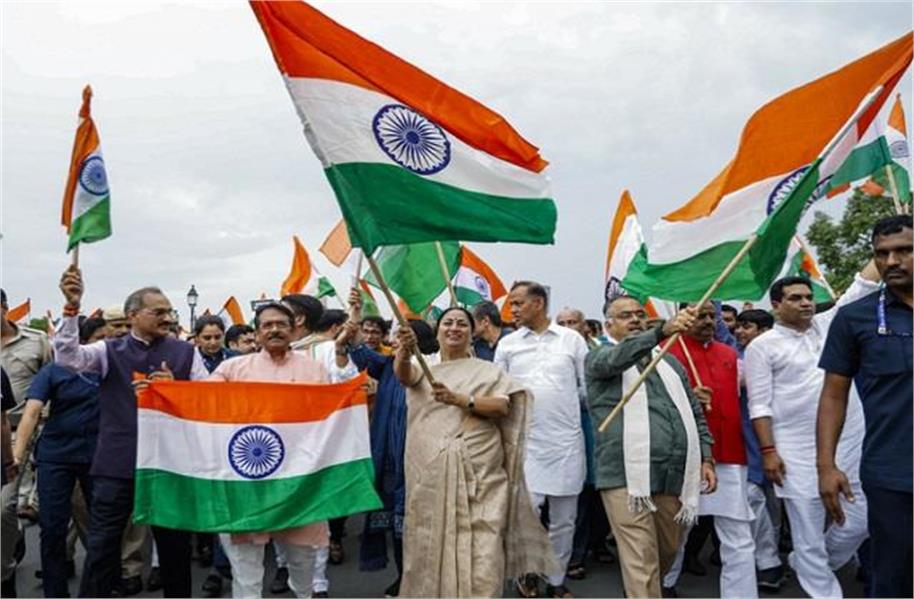 केंद्रीय मंत्री अमित शाह, राजनाथ सिंह और जे पी नड्डा सहित शीर्ष भाजपा नेताओं द्वारा रविवार को इस मुद्दे पर विचार-विमर्श के बाद 11 दिवसीय राष्ट्रव्यापी तिरंगा यात्रा शुरू की गई। नड्डा ने सोमवार को इस कवायद को अंतिम रूप देने के लिए तरुण चुग, विनोद तावड़े और दुष्यंत गौतम समेत भाजपा महासचिवों के साथ बैठक की। भाजपा के राष्ट्रीय महासचिव तरुण चुग ने कहा कि तिरंगा महज एक झंडा नहीं है, बल्कि यह भारत की आत्मा को दर्शाता है। राष्ट्रीय राजधानी में तिरंगा यात्रा में शामिल होने के दौरान चुग ने संवाददाताओं से कहा, ‘‘भारत बदल गया है। नया भारत शांति चाहता है, लेकिन आतंकवाद को जड़ से उखाड़ने के लिए किसी भी हद तक जाएगा।”