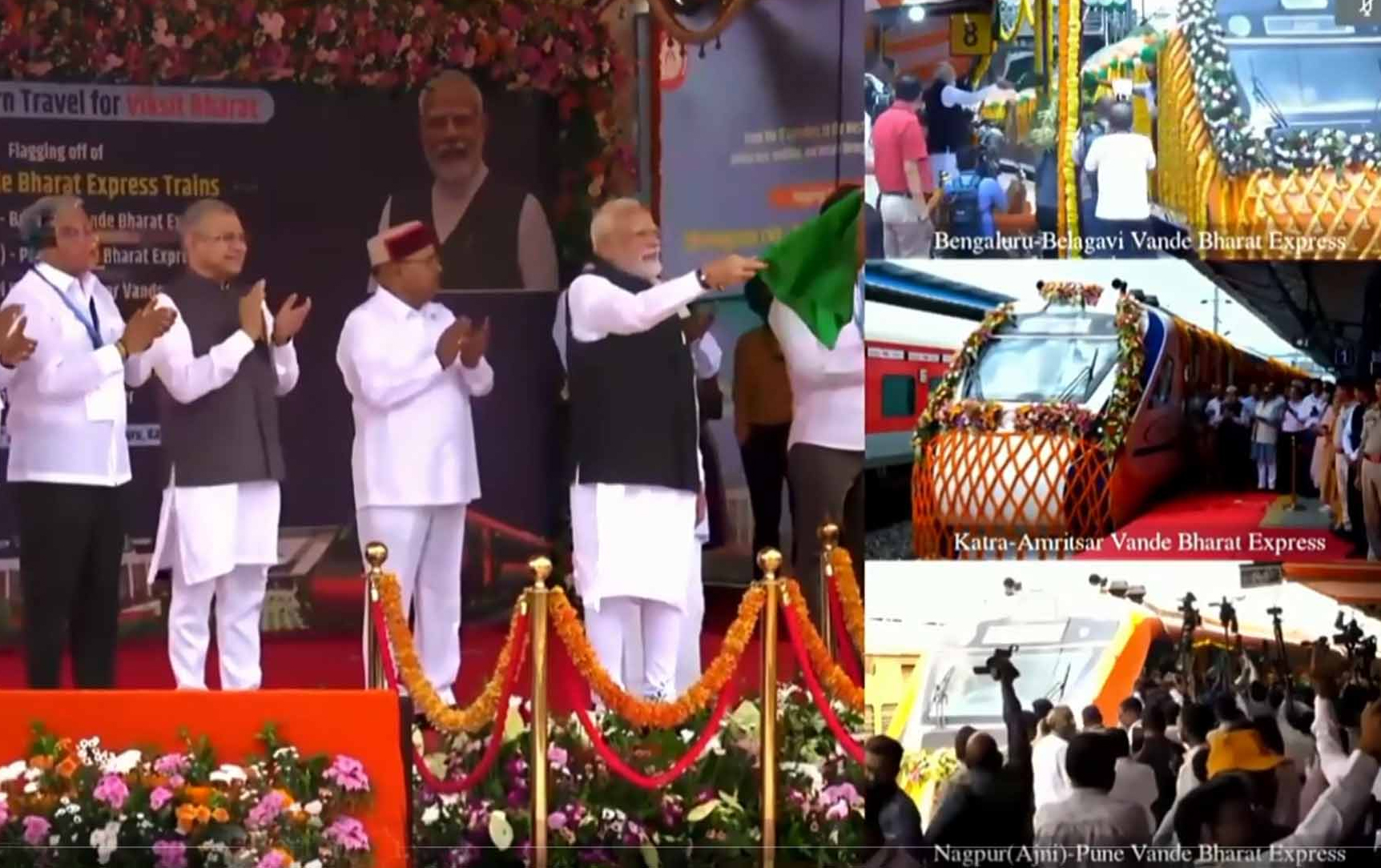 पीएम मोदी ने तीन वंदे भारत ट्रेनों को दिखाई हरी झंडी, नई मेट्रो लाइन का किया शिलान्यास