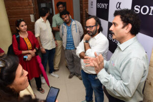 मिर्ज़ापुर वेब सीरीज़ के सह-लेखक श्री विनीत कृष्णा ने बताया कि कैसे उन्होंने ओटीटी से माइक्रोड्रामा राइटिंग तक का सफर तय किया। उन्होंने कहा कि 60–90 सेकंड की वर्टिकल कहानियां लिखना चुनौती भी है और मौका भी। सोनी इंडिया के श्री सुनील गवई, श्री संधीव नायर और श्री ईशान सिंह ने लाइव डेमो में दिखाया कि वर्टिकल शूटिंग, लाइटिंग और ऑब्जेक्ट की पोज़िशनिंग मोबाइल स्क्रीन पर कहानी कहने में कितनी अहम है। उन्होंने बताया कि सोनी के मिररलेस कैमरे जैसी प्रोफेशनल तकनीक से छोटे वर्टिकल फिल्मों की क्वालिटी और भी बढ़ सकती है। वर्कशॉप में प्रतिभागियों ने खुद भी स्क्रिप्ट लिखकर, एक्टिंग करके, शूटिंग और एडिटिंग कर अपने वर्टिकल माइक्रोड्रामा बनाए।