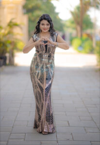 At the grand event, Shreya Kulkarni appeared in a stunning designer gown that perfectly blended sophistication and glamour. The beautifully detailed outfit, featuring intricate patterns and shimmering elements, enhanced her graceful look. The fitted silhouette highlighted her elegance while maintaining a classy red-carpet appearance.